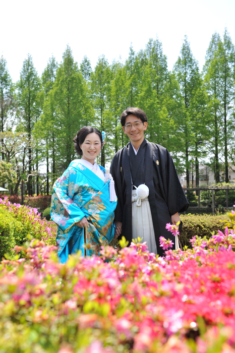 満開に咲いたなんじゃもんじゃの木をバックにローケーション撮影もできます。