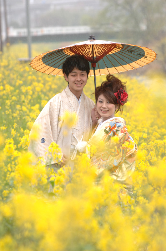 この日はあいにく雨でしたが、傘を差し、菜の花と一緒にフォト♪