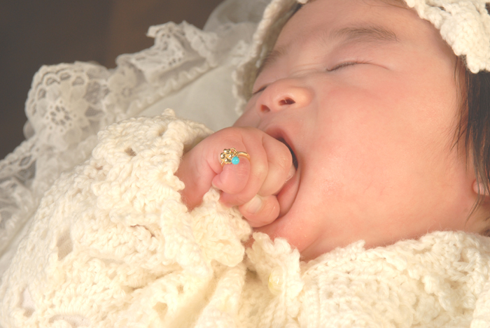 赤ちゃんにベビーリングをしてお写真に残しておきたい ♪ っとネックレスから小さな指輪をはずしました。