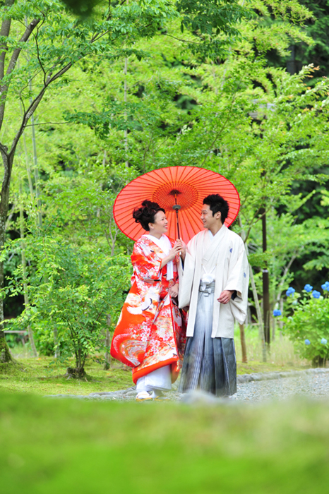 でも、この後雨が上がり、晴れて日本庭園での撮影も行いました。