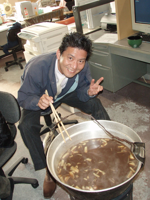 休憩中にみんなで美味しくいただきました。オーナーの作るお汁粉は甘さ控えめ、