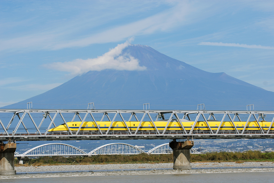 点検作業車両と聞いていたのでもっとゆっくり走ってくるかと思いきや、爆速で富士川の鉄橋を走り抜けていきました。